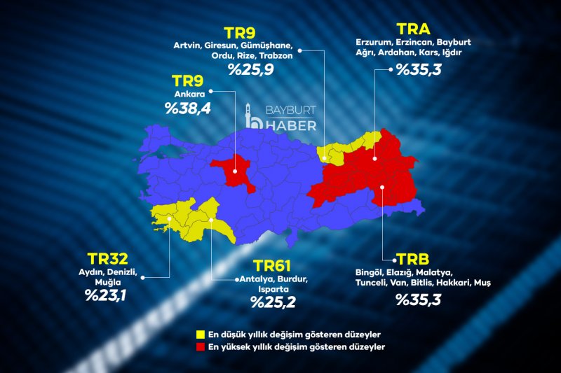 Aynı şekilde Bingöl, Malatya, Tunceli, Van, Bitlis, Hakkari ve Muş gibi illerin de Türkiye ortalamasının üzerine çıktığı belirtildi. Özellikle Bayburt’un bu illerle birlikte yüksek artış göstermesi, bölgedeki hareketliliği ortaya koydu.