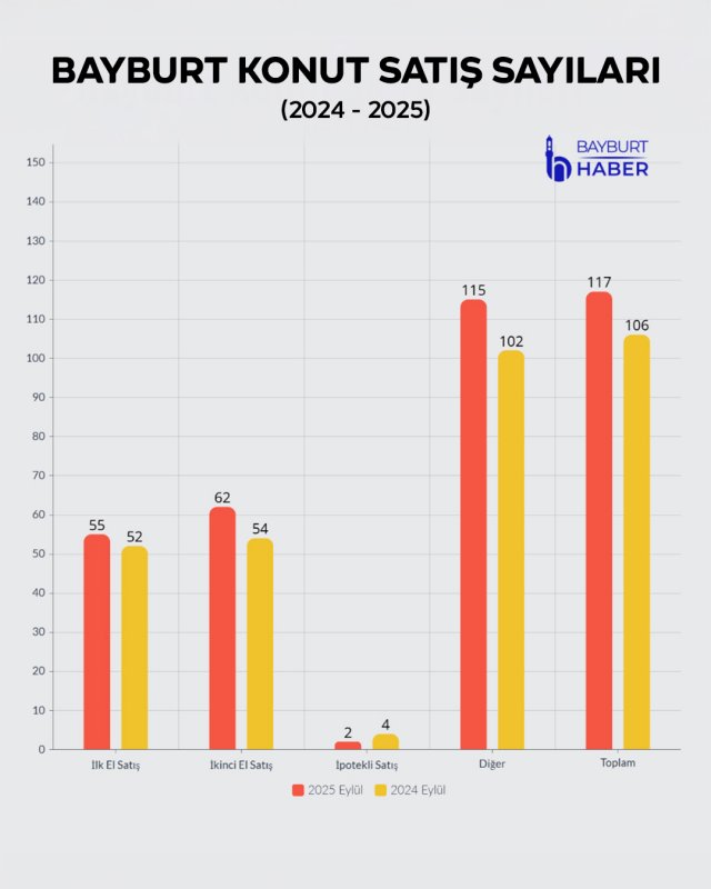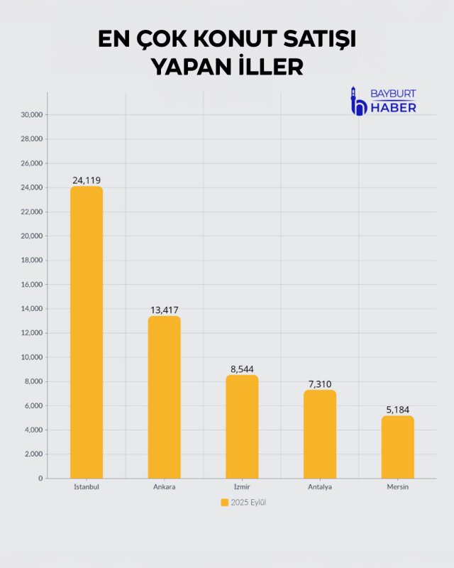 2025 Ağustos ayında ise 5’i ipotekli olmak üzere toplam 116 konut satışı gerçekleşmişti. Bu verilere göre Eylül ayında satış sayısı bir konut azalsa da, ilk el satışlarda artış yaşandı. Ağustos ayında 39 ilk el, 77 ikinci el satış yapılmıştı. Eylül ayında yurt genelinde toplam 150 bin 657 konut satışı yapıldı. Bunların 21 bin 266’sı ipotekli satış, 47 bin 117’si ilk el, 103 bin 540’ı ikinci el satış olarak kayıtlara geçti. 2025 Eylül ayında en az satış yapılan iller arasında Bayburt 117 satışla ikinci sırada yer aldı. Listenin başında Ardahan 70 satışla bulunurken, Tunceli 142, Hakkari 150 ve Gümüşhane 194 satışla en az konut satışı yapılan iller arasında yer aldı. Öte yandan en fazla konut satışının yapıldığı iller ise sırasıyla İstanbul 24.119, Ankara 13.417, İzmir 8.544, Antalya 7.310 ve Mersin 5.184 olarak açıklandı.