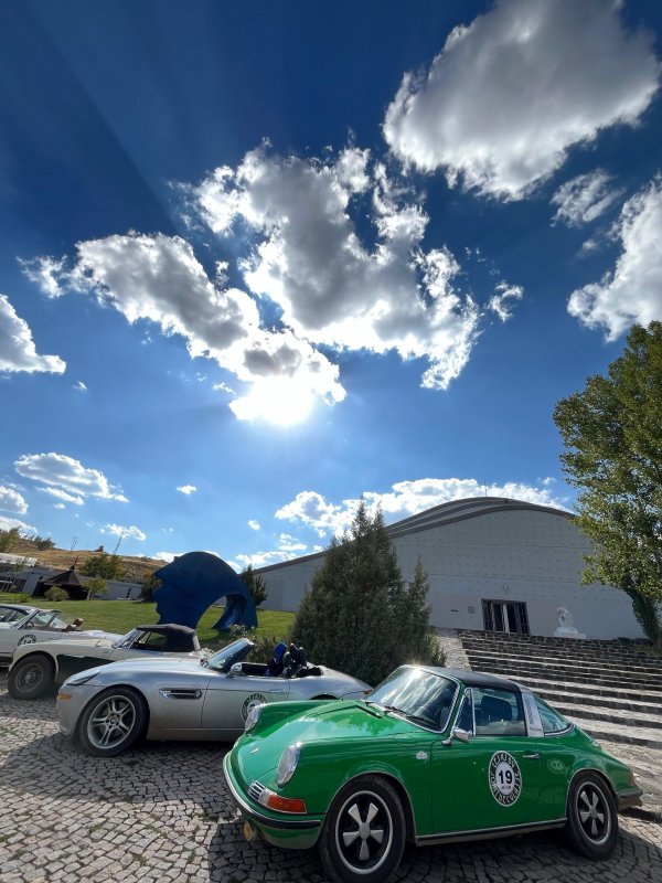 Ana müze binasının önüne özenle park edilen bu klasik otomobiller, modern mimariye sahip müze yapısıyla etkileyici bir diyalog kurdu. Geçmişin estetiğini günümüzün sanat ve kültür mekânıyla birleştiren bu buluşma, izleyicilere eşsiz bir görsel şölen sundu.