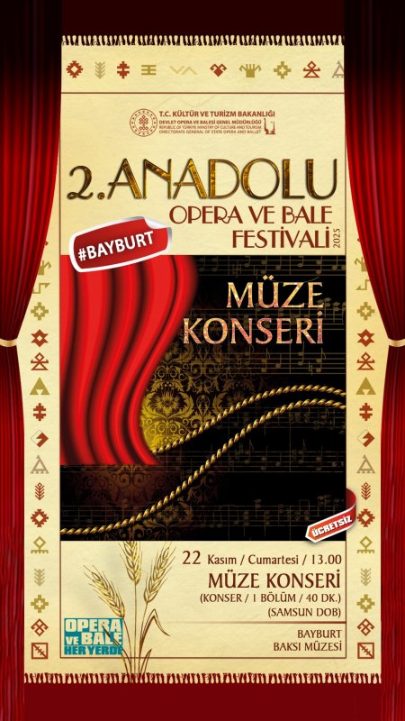 Festivalin Bayburt ayağı, 22 Kasım 2025 Cumartesi günü saat 13.00’te Bayburt Baksı Müzesi’nde Samsun Devlet Opera ve Balesi’nin seçkin solistlerinin seslendireceği “Müze Konseri” ile başlayacak. Aynı gün saat 19.00’da Bayburt Üniversitesi Fuat Sezgin Konferans Salonu’nda düzenlenecek “Anadolu Ezgileri” konseri ile program devam edecek.
