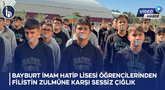 Bayburt Anadolu İmam Hatip Lisesi öğrencileri, İsrail'in Filistin'deki saldırılarına dikkat çekmek amacıyla okul bahçesinde sessiz bir protesto düzenledi. Ellerinde Türk ve Filistin bayraklarıyla bir araya gelen öğrenciler, ağızlarına "Söz tükendi! ayağa kalk ey insan" yazılı bantlar yapıştırarak, Gazze'de yaşanan insanlık dramına karşı duyarlılık gösterdi.